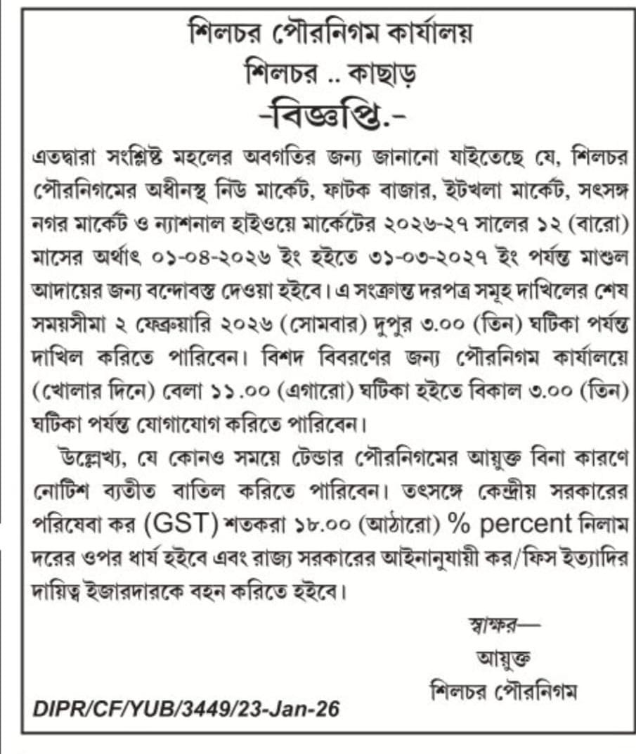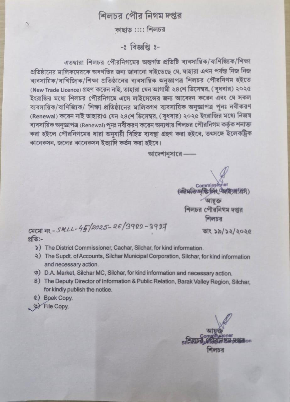 8 19/12/2025 Tough Stance on Business Regulations and Municipal Governance: Silchar Municipal Corporation Imposes Deadline for Trade Licenses. Related To Trade License